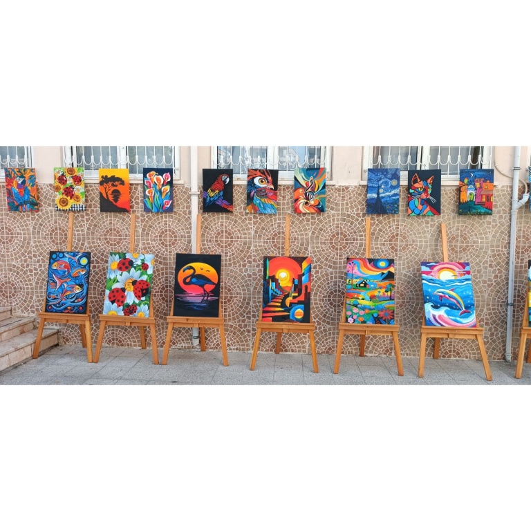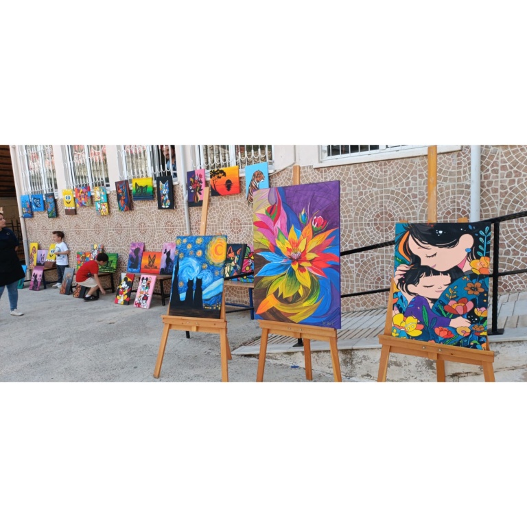 Görsel sanatlar dersinde öğrencilerimiz tarafından yapılan tuval çalışmalarının sergilendiği sene sonu sergimiz açıldı.